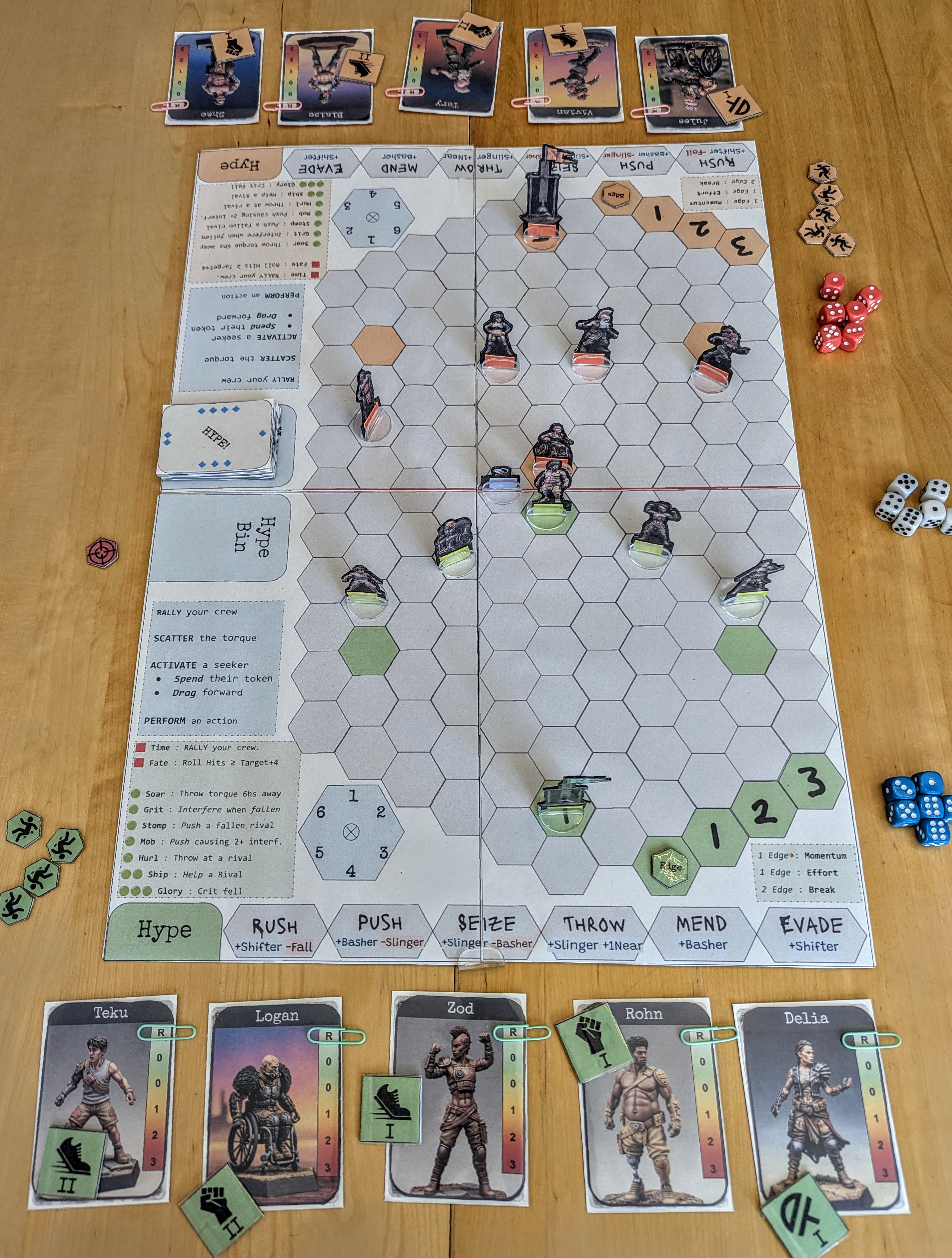 Appendix I now provides guidance and resources for hobby players that wish to build their game from scratch. It lists all the needed components for a game of Torque Arena and references a whole separate document (available soon) providing them in the form of printable tokens, cards, paper miniatures and arena segments.